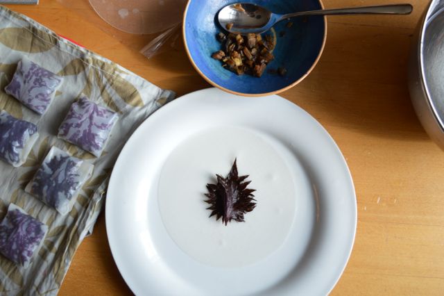 Shiso wird wie andere Kräuter verwendet: Fein geschnitten als Gewürz, ganze kleine Blätter als Salatzugabe, in Öl angedünstet oder als Grundlage eines Pestos. Meine Erfahrung mit Shiso hält sich bis jetzt in Grenzen (wir haben ihn dieses Jahr zum ersten Mal angepflanzt), aber das heutige Rezept hat mich überzeugt. Ich bin gespannt, was ihr davon haltet!