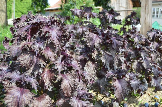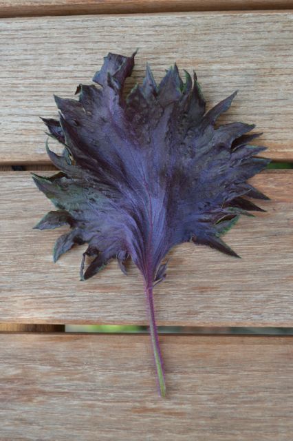 Shiso, auch Perilla genannt, ist ein Gewürz, welches vor allem in der japanischen Küche gebraucht wird: Er würzt Sushi oder Tempura und wird für die Zubereitung von Umeboshi gebraucht. In unserem Garten wächst purpurroter Shiso, es gibt aber auch eine dunkelgrüne Variante. Shiso hat einen ganz eigenen Geschmack, der oft als „minzig“ beschrieben wird. Aus meiner Sicht trifft das nicht ganz zu, ich finde es aber äusserst schwierig, das Aroma genau wiederzugeben. Am besten, ihr macht euch ein eigenes Bild, denn nächste Woche gibt es Shiso in eurem Gemüseabo!