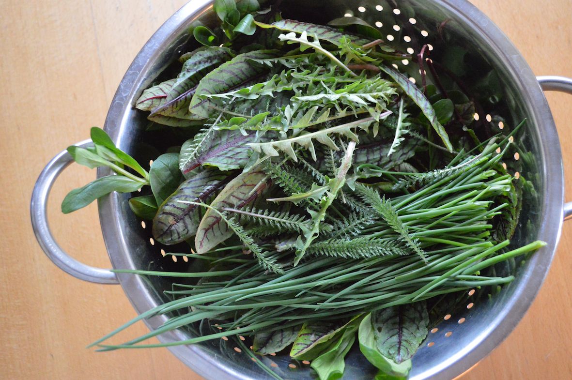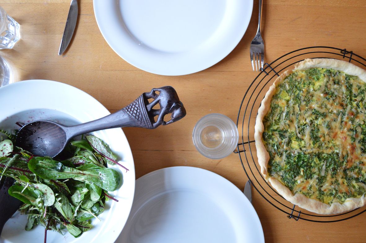 Die Hühner legen fleissig Eier, aber das Gemüse im Garten fehlt zurzeit noch – ausser das Unkraut, das spriesst natürlich munter. Auch einige Kräuter wachsen bereits. Deshalb habe ich mich vom aktuellen Angebot inspirieren lassen und neben dem Winterlauch zwei weitere Sorten Lauch verwendet: Bärlauch und Schnittlauch. So wurde es dann trotz Winterlauch doch noch eine Frühlingsquiche. Dazu gab es einen Wildkräutersalat mit Nüsslisalat, Blutampfer, Löwenzahn und Schafgarbe: Ihr seht, das Unkraut hat es bis auf den Teller geschafft…