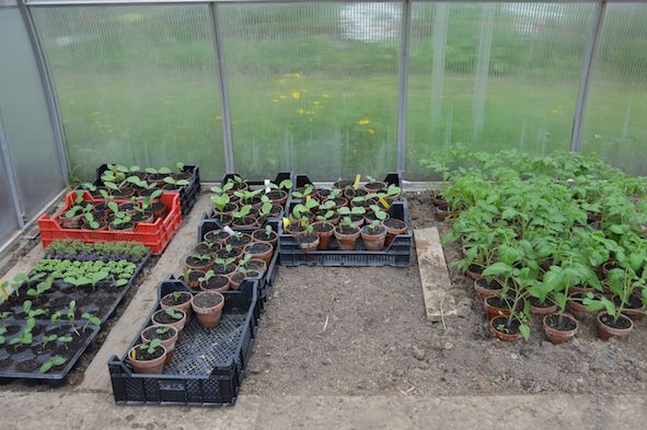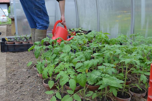 In dieser Jahreszeit ist vor allem das abhärten der Jungpflanzen von grosser Wichtigkeit. In der Pflanzenanzucht generell ist das korrekte Verhältnis von Wärme, Licht und Wasser essentiell. Es braucht Erfahrung und ein Gespür für die Pflanzen und die Verhältnisse. Speziell unsere rudimentären Rahmenbedingungen (kein geheiztes Gewächshaus) verlangen eine hohe Aufmerksamkeit. Auch Insekten wie Läuse und Spinnmilben, aber auch Schnecken gilt es in unserem Gewächshaus im Auge zu behalten. Der frisch gekeimte Kürbis wird zurzeit von den Schnecken entdeckt…!