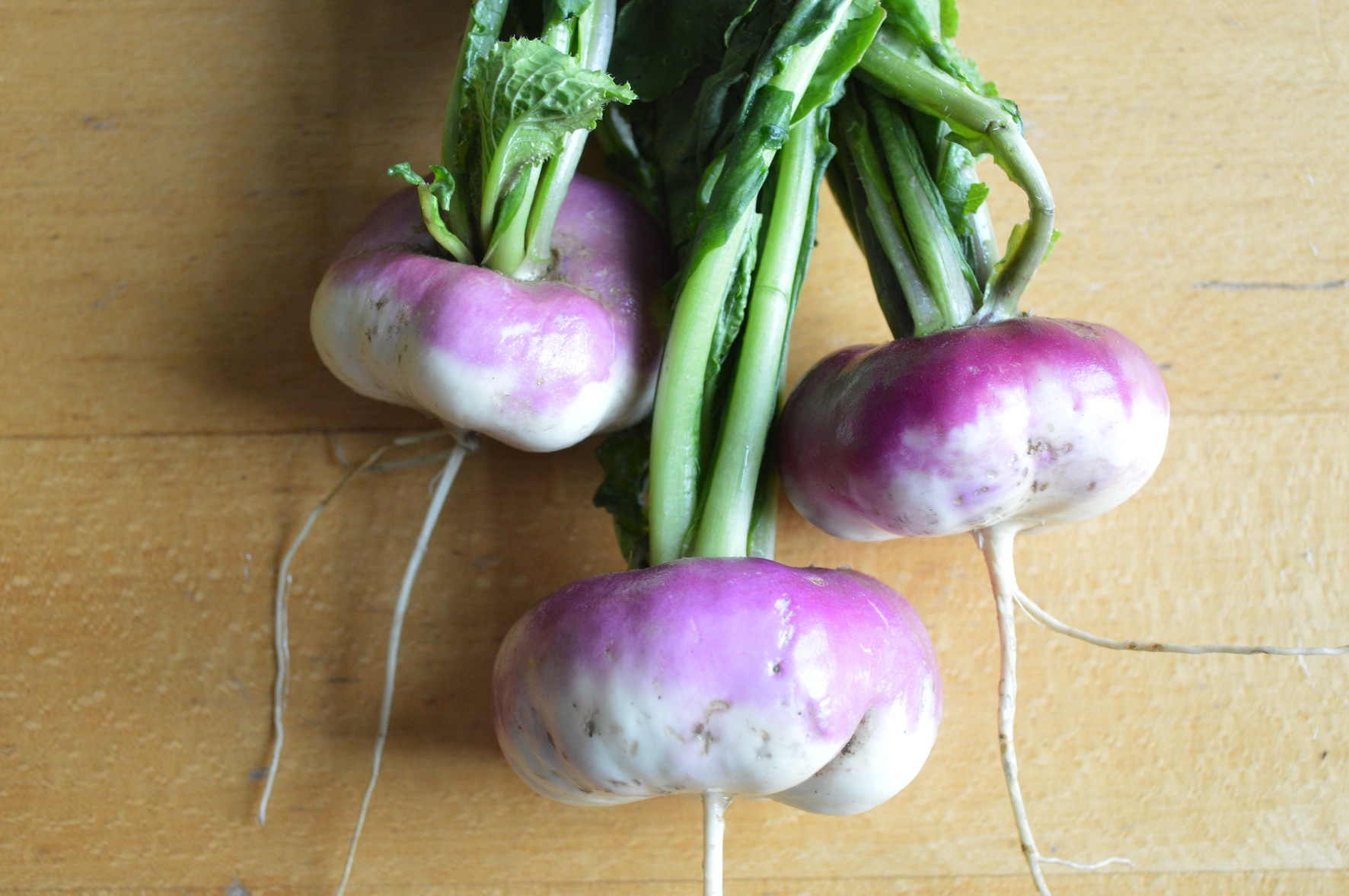 Sicher überall hat es Mairüben (siehe Bild), Lattich/Salat, Schnittmangold und Frühlingszwiebeln. Je nach dem gibt es zusätzlich: (Knack-)Erbsen, Fenchel, Schnittsalat, Broccoli, Kohlrabi, Rettich und Radiesli.