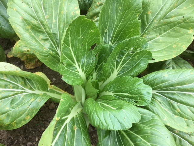 Diese Woche hat es PakChoi im Abo. PakChoi ist ein asiatisches Blattgemüse welches mit dem Kohl verwandt ist. Sowohl seine Blätter als auch sein Stiel lassen sich essen. Als Kreuzblütler ist der PakChoi leider sehr anfällig auf Schädlinge. Vor allem die Erdflöhe haben ihm dieses Jahr zugesetzt. Deshalb hat er viele kleine Löcher in den Blätter (siehe Foto). Ich finde diese Pflanzen solte man deshalb aber nicht wegschmeissen. Wenn wir keinen intensiven Insektizideinsatz wollen gehört etwas Schädlingsbefall einfach dazu. Ihr könnt den PakChoi ohne Probleme trotzdem essen. Die Stiele sind zum Beispiel gar nicht beeinträchtigt.