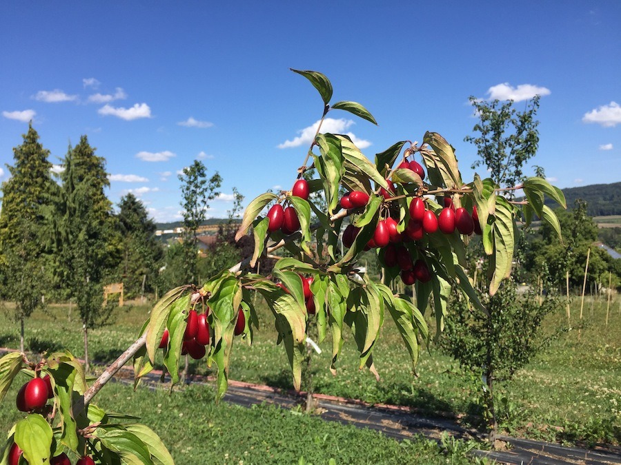 Auch wir sind Teil des Wildobst-Arboretums: Bei uns in Hallwil entstand in den letzten zwei Jahren eine Erwerbsanlage mit Schlehen, Kornelkirschen, Sanddorn, Felsenbirnen, Berberitzen, Zibarten, Kirschpflaumen und Hagebutten, die vor allem das Potential von Wildobst für die Verarbeitung und Landwirtschaft aufzeigen soll. Bisher konnten erst kleine Mengen geerntet werden, aber wir sind gespannt auf die diesjährigen Früchte.