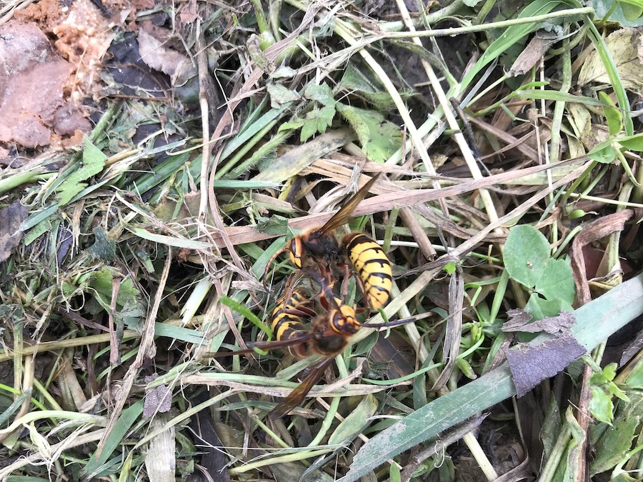 Spätestens wenn die Mostbirnen reif von den Bäumen fallen, sind auch Hornissen eifrig auf der Nahrungssuche. Diese zwei Exemplare haben sich heftig gestritten, weshalb sie abgelenkt und gut zu fotografieren waren. Hornissen finde ich wunderschöne Tiere. Ich bin immer wieder fasziniert, welchen ‘Lärm’ diese Insekten beim Fliegen machen.