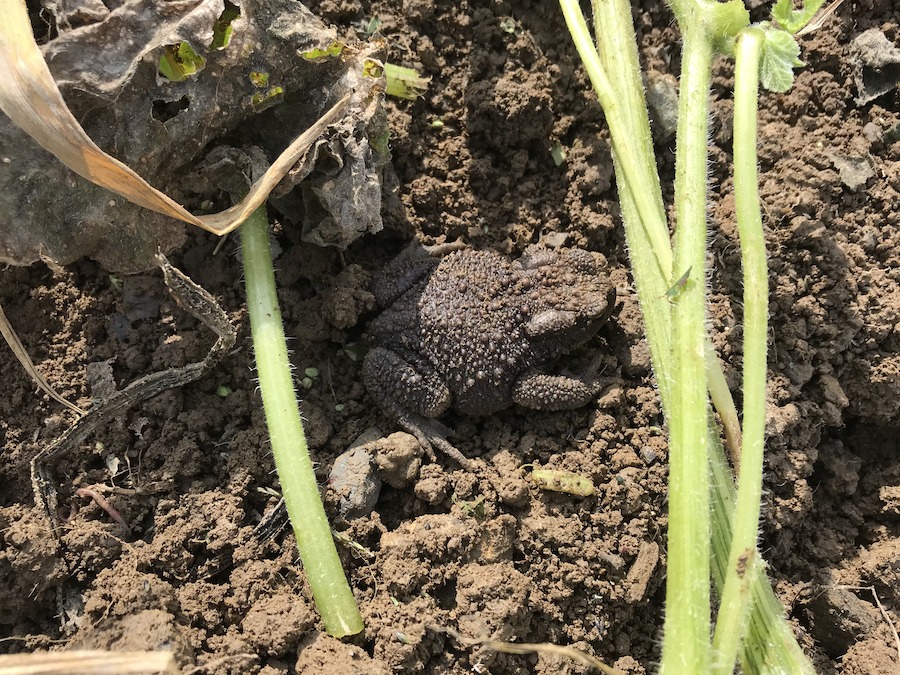 Im letzten Fauna-Blog habe ich erwähnt, dass ich auch schon Kröten und Eidechsen gesehen habe. Der Zufall wollte es, dass ich ihnen die letzten Wochen wieder begegnet bin. Die Kröte war auf unserem Gemüsefeld beim Friedhof unterwegs. Die Eidechse habe ich beim Emden einer unserer Ökoflächen entdeckt.