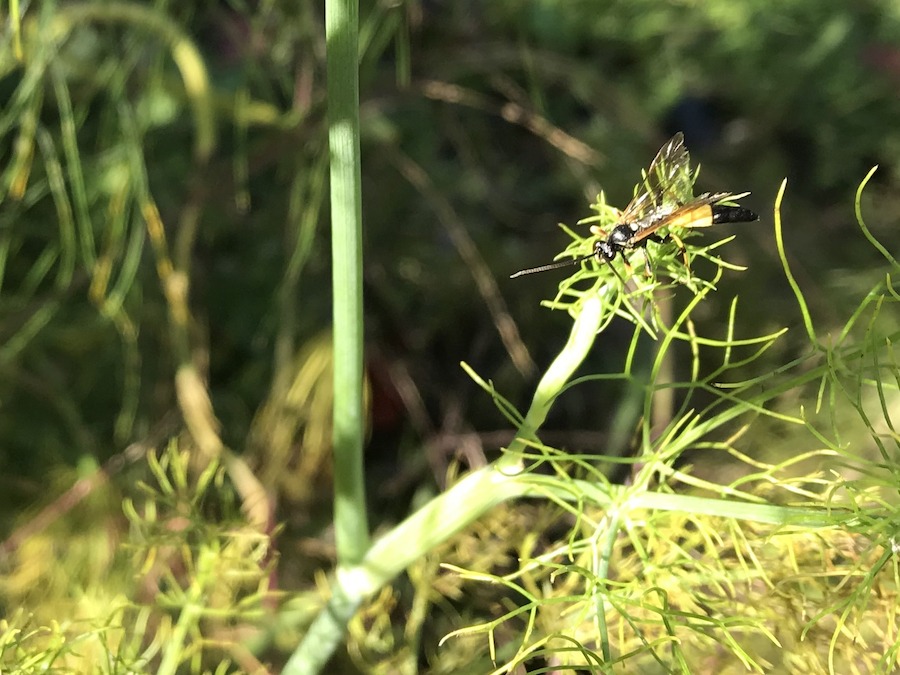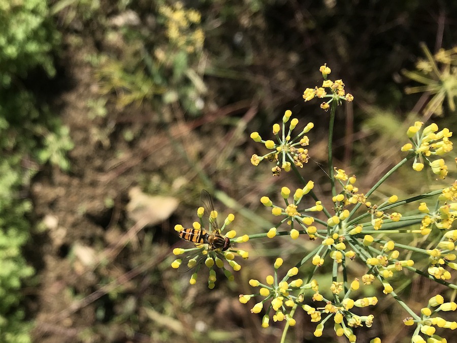 Bleiben wir noch etwas in der Luft. Besonders interessant finde ich die grosse Vielfalt bei den Schwebfliegen. Ihr Name kommt von ihrer Fähigkeit, in der Luft zu schweben. Dies erreichen sie mit unglaublichen 300 Flügelschlägen in der Sekunde. Oft lassen wir Kulturen nach der Ernte stehen und blühen. Neben Salat findet man so vor allem bei Fenchel eine Vielzahl von unterschiedlichsten Insekten.