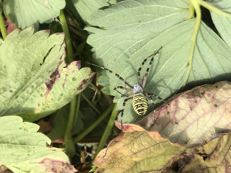 Eher noch im Sommer habe ich mehrfach diese wunderschöne sowie durch ihre Grösse und Färbung auch etwas furchteinflössende Wespenspinne gesehen.