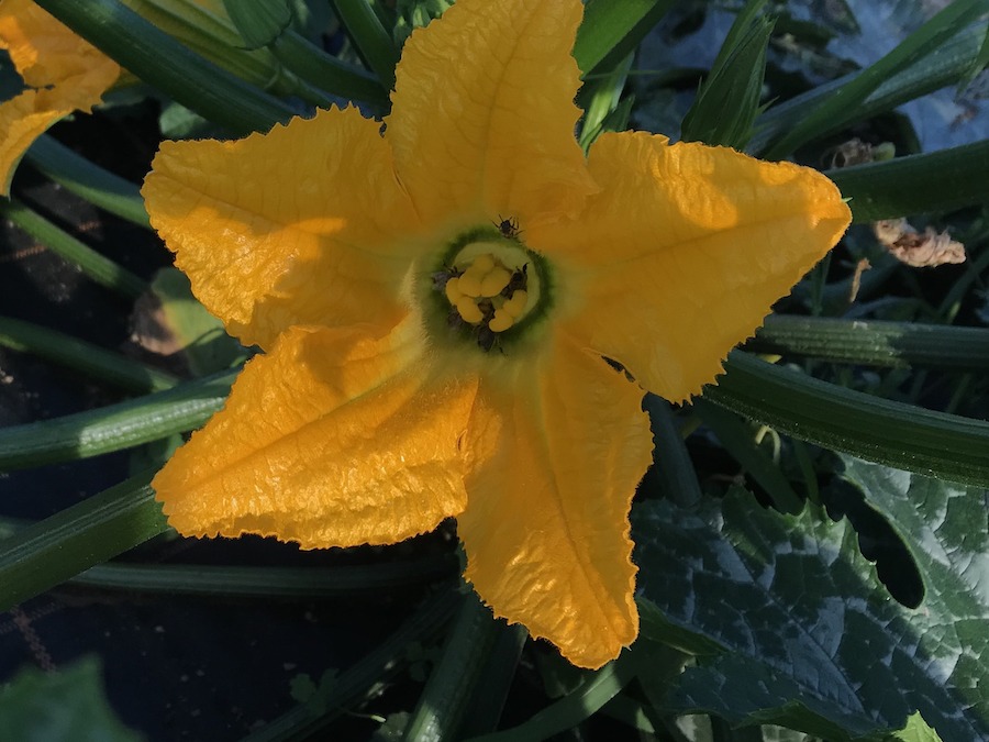 Zum Schluss noch etwas sommerlicheres. Zucchettiblüten ziehen mit ihrer Farbe und dem Duft eine Vielzahl von Insekten an. Hier ist eine ganze Truppe von Insekten bei der Arbeit.