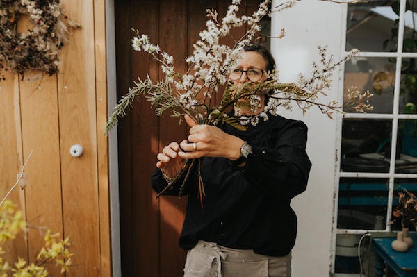 Martina Räber baut gemeinsam mit ihrem Partner Thomas Urech Gemüse, Wildobst und Blumen an. Sie ist Mitglied der Slowflower Bewegung.